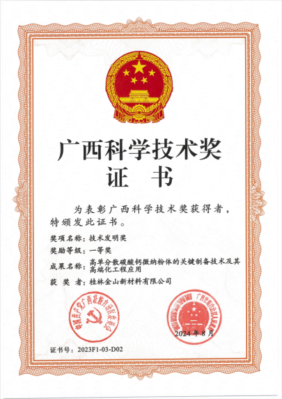 “中國(guó)碳酸鈣行業(yè)納米鈣第三強(qiáng)”